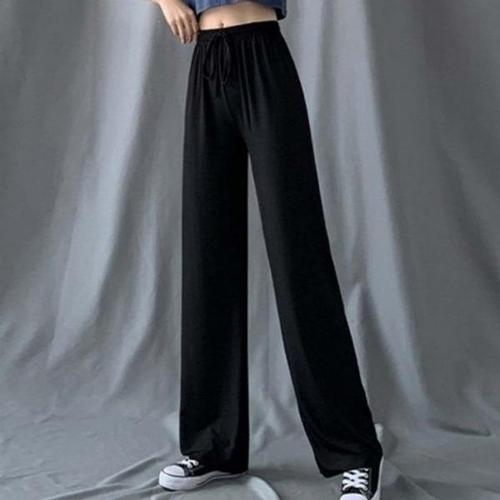 빅사이즈 착한팬츠 여성 와이드 팬츠 코튼 보풀없는 무지편한 밴딩바지 롱다리핏 데일리 트레이닝 사계절용
