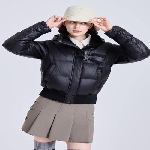 [챌린저]여성 후드 탈부착 글로시 푸퍼 패딩 자켓 블랙_CHE4WJK5804BK_IC