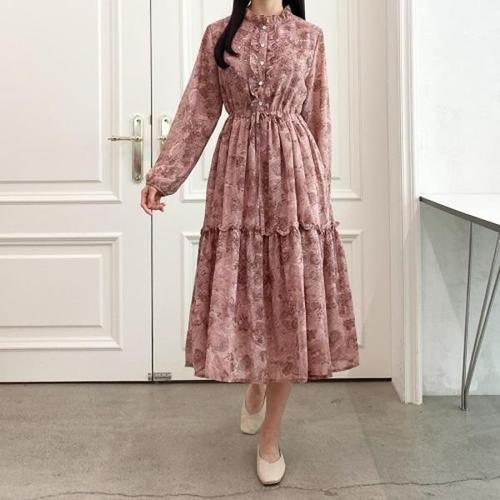 [다잇템][다잇템] 여자 허리셔링 에이라인 중세풍 티어드 프릴블라우스 원피스_18449148_588872