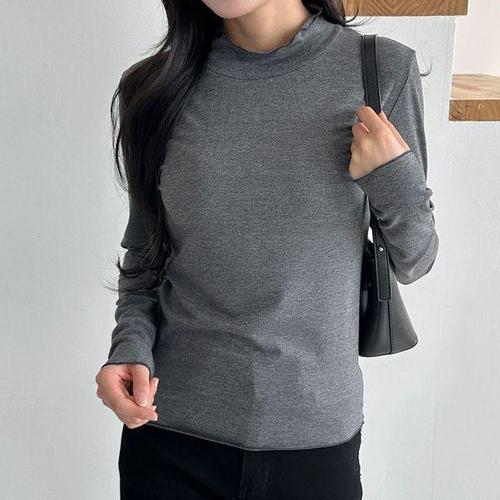 [에이치플러스몰]여성 프릴 반목 이너니트 긴팔 하프넥 레이스 티셔츠 슬림핏