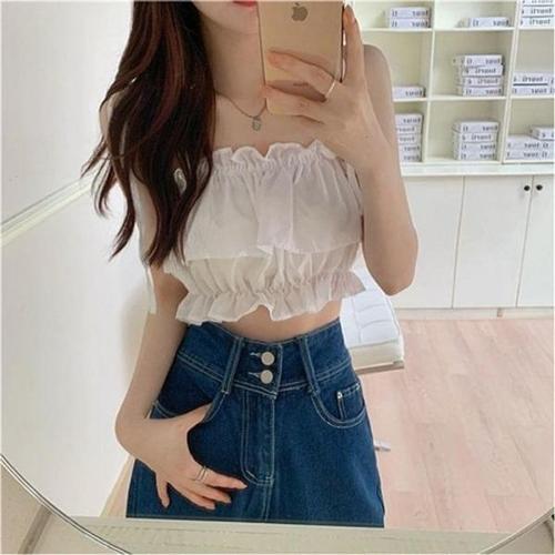 [엄지척]여성 하이웨이스트 프릴 끈나시 민소매 탑_19610521_667501