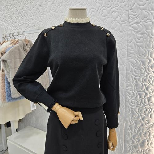 [샤틴]프릴넥 버튼 포인트 니트 티셔츠 (S254K963)DG