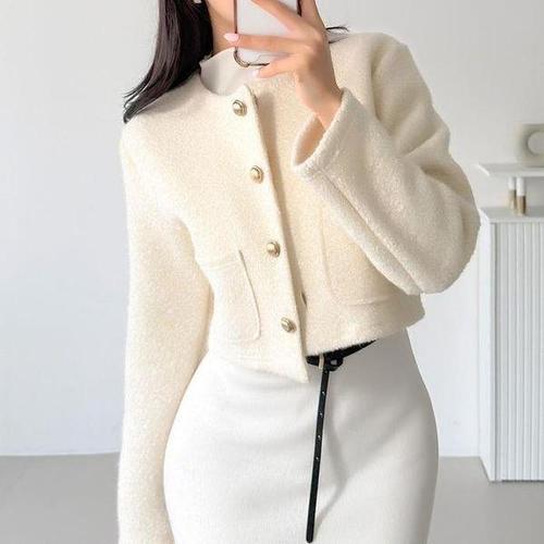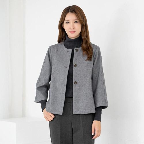 [다잇템_패션]여자 금장단추 카라없는 울혼방 헤링본 자켓