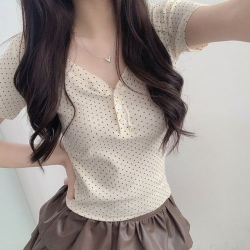 입꼬 / 도트 헨리넥 버튼 반팔티셔츠 3color