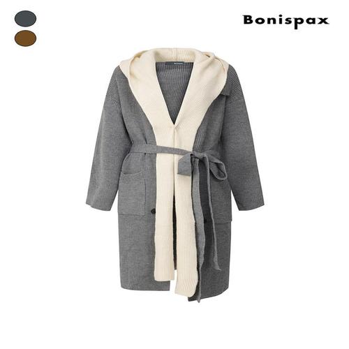 [보니스팍스]벨티드 배색 후드 롱 가디건 (XP9KG006M0)