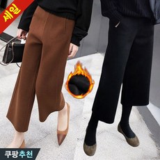 (다리 길어보이는) 날씬해보이는 여성 모직 와이드 9부 팬츠 가을 겨울 편한 빈티지 우아한 프리미엄 학생 도톰한 방한 허리 밴딩 심플 무지 독특한 캐쥬얼 슬렉스 일자 바지