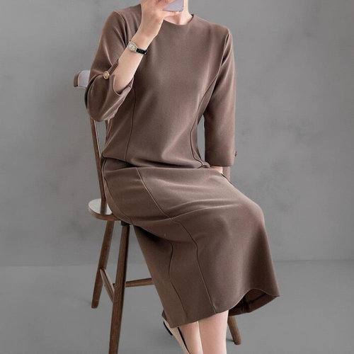 옷자락 / 여성 가을 하객 스타일 버튼 7부 절개 라인 신축성 롱