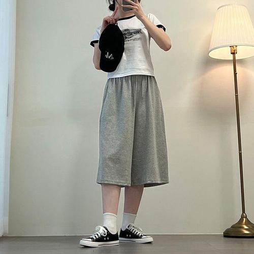 [옷자락]여성 7부 와이드 밴딩 반바지 여름 츄리닝팬츠
