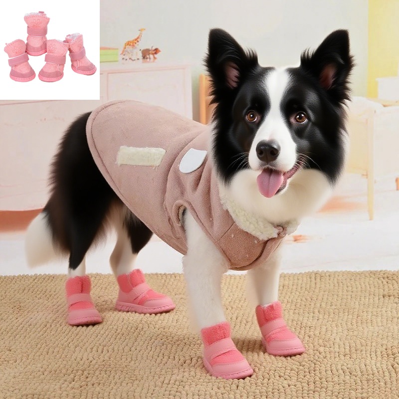 TEMU 2개 세트 소형견 겨울 부츠, 미끄럼 방지 밑창, 보온 및 미끄럼 방지 디자인, 조절 가능한 클로저, 포메라니안, 치와와, 푸들에 적합한 부드럽고 포근한 부츠 (착용 및 탈착이 쉬움)