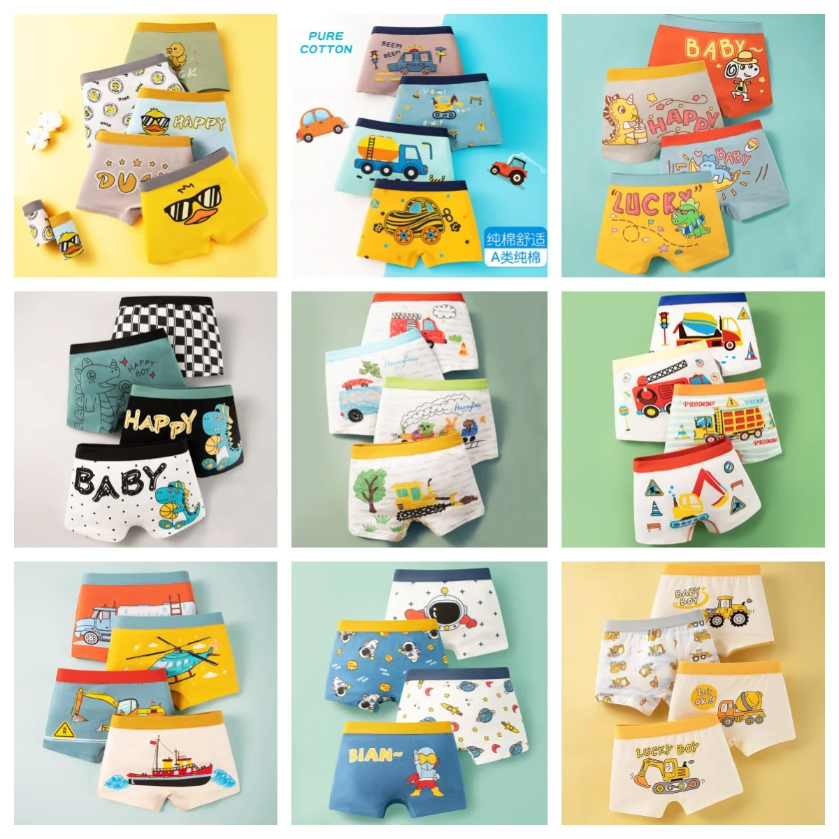 어린이 속옷 소년 팬티, 언더팬츠 공룡 헬리콥터 자동차, 통기성 면 반바지, 소년 복서 브리프, 4 개/로트