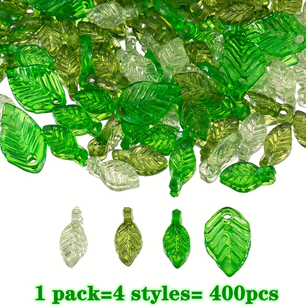 TEMU 400개 그린 아크릴 잎사귀 비즈 | 다면체 유리 스페이서 비즈, 잎사귀 펜던트 참, 주얼리 제작용, 우정 선물, 키체인 펜던트, 의류, 주얼리 제작 액세서리 키트, 장식