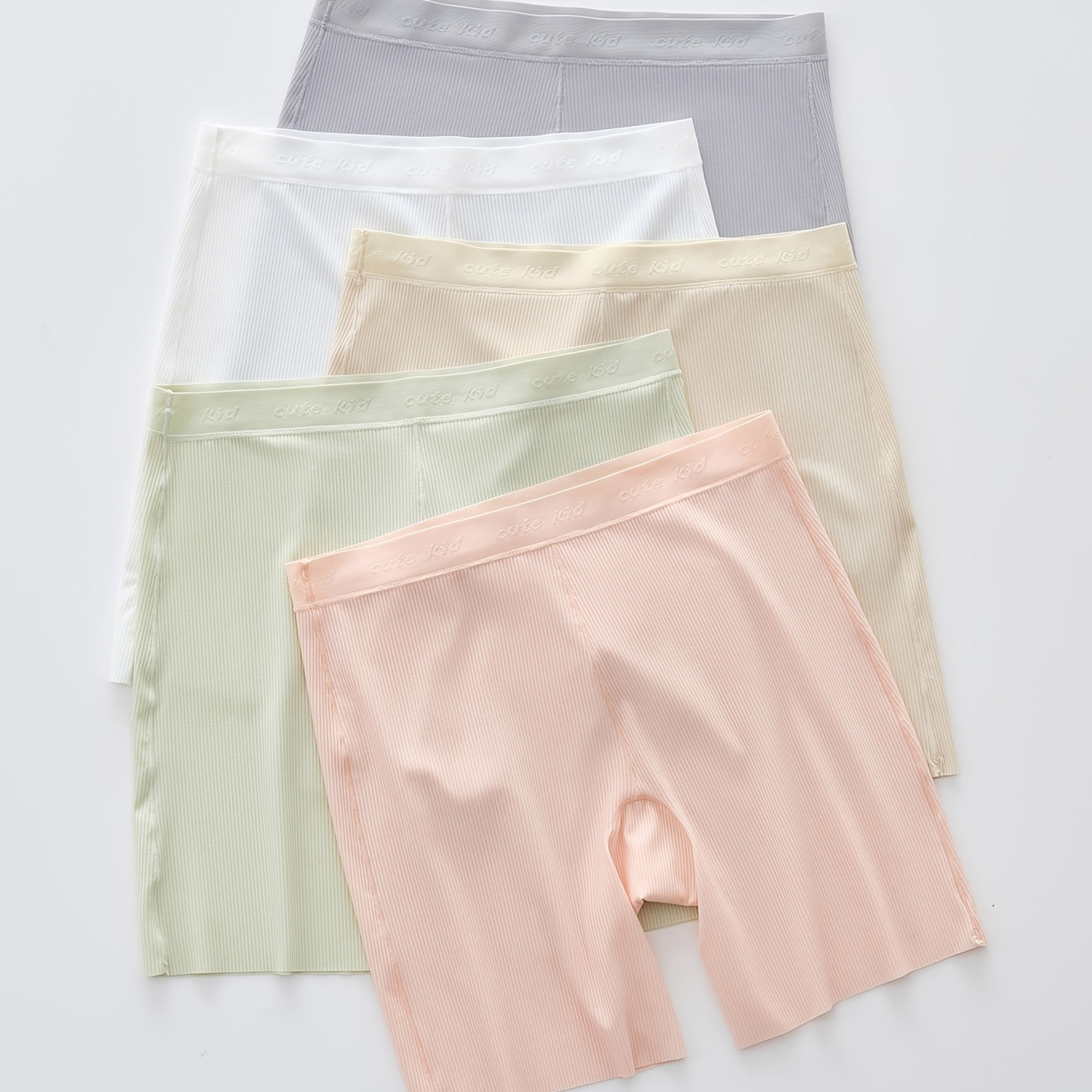 TEMU 여아용 편안한 비침 방지 고탄성 속옷 5개 랜덤 조합, 아동용 여름 얇은 경량 부드럽고 편안하며 통기성 좋은 안전 팬티, 여아용 반바지, 원피스, 댄스 반바지, 아동용 레깅스, 단색 패턴, MIANZHI