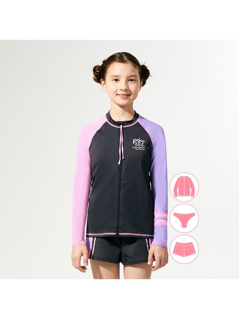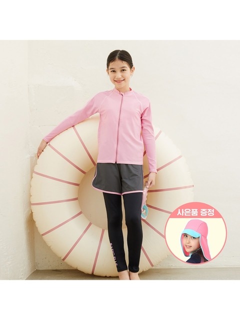베이직엘르 여아동 핑크 배색 집업 래쉬가드 3종 세트 BEG-S603N