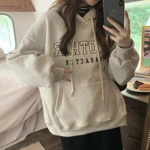 여성 레터링 루즈핏 캐주얼 후드 기모 맨투맨