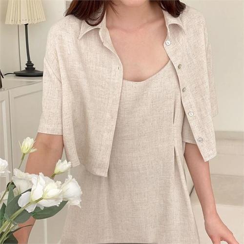 [다잇템]여자 마남방 린넨볼레로 탱크 반소매 셔츠 (9939767A)