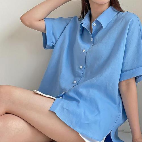 [다잇템]여자 박스 린넨남방 반소매 워터밤 박시핏 셔츠 (10513237A)