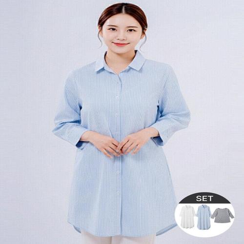 [엘루아][보노보] 여성 루즈핏 린넨 롱셔츠 2종 + 베이직 티셔츠 3종세트