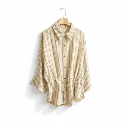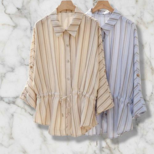 [미라클세븐]여성 린넨 스트라이프 루즈핏 허리조임 셔츠