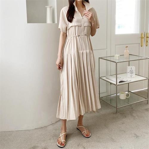 [다잇템]여자 셔츠핏 주름 린넨원단 원피스 (8646260A)
