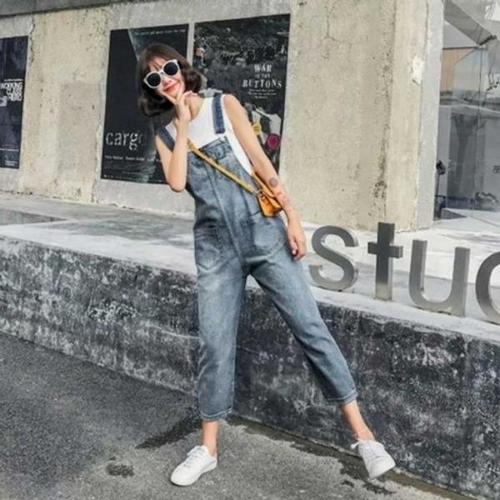 여자멜빵 멜빵반바지 데님반 청멜빵 여성멜빵 데 WFK2GXW