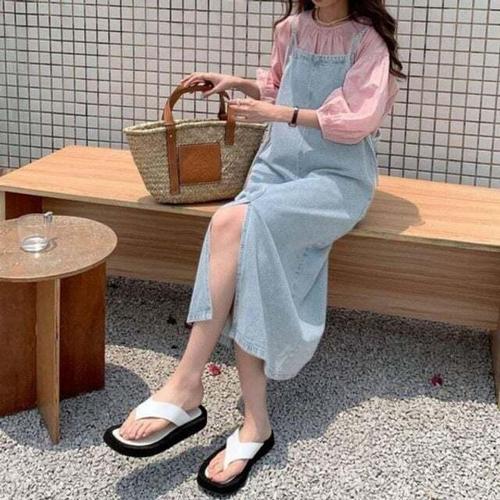 [모노무드]모노무드 SDGE-8518 여자 여름 데이트 나들이 편한 멜빵 데님 롱 원피스