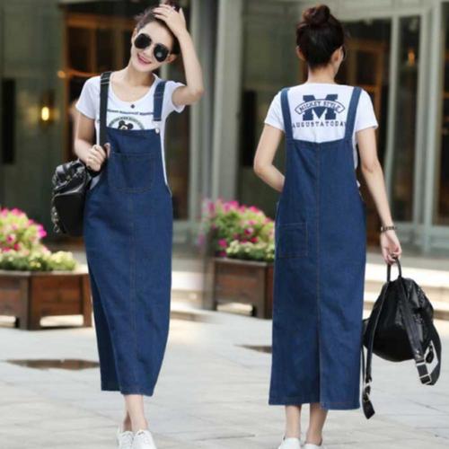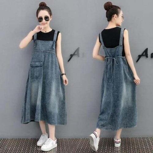 [모노무드]모노무드 xmfl-2 여성 여름 원피스 청 데님 루즈핏 멜빵 등 롱