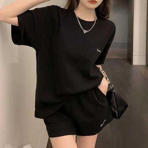 여름 트레이닝 세트 여성용 느슨한 캐주얼 대형 반팔 바지 투피스 세트