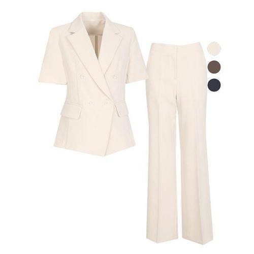 COSYEVNO 여름 여성 정장 세트 반팔 코트+바지 오피스룩 슬림핏 면접 트렌드 시크 직장인 투피스