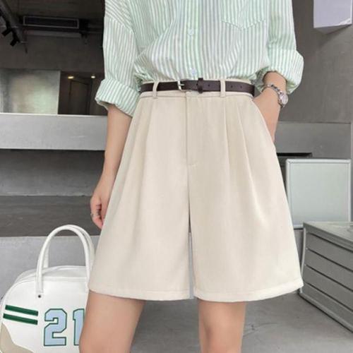 [에이치플러스몰]여성 여름 하이웨스트 와이드핏 정장반바지 일자핏 숏