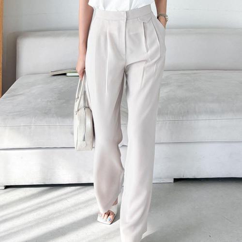 [옷자락]여자 여름하객룩 회사원 반하이 핀턱 와이드 슬랙스_4