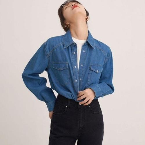오피스룩 데님셔츠 청남방 여자 데일리 캐주얼 포켓 단정한