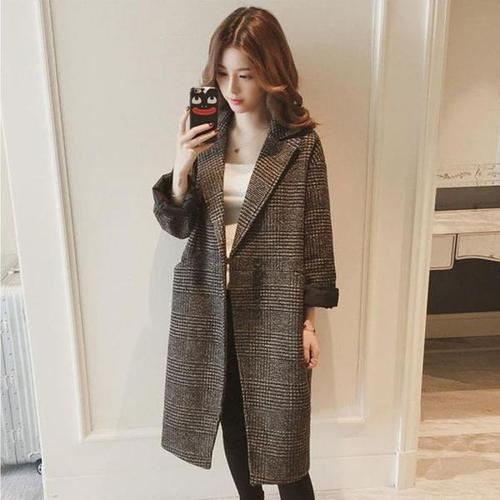 [오너클랜]인기상품 여성 체크 오버핏 롱 셔츠 모직 코트 외투 [WE43492_250915]