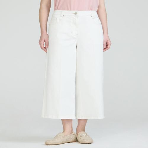 헤지스 여성 [Semi-Wide] 에센셜 여름 크롭 세미와이드 밴딩 데님 팬츠 화이트 (HSPA5BC81WT)