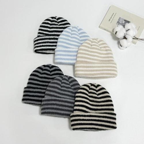 [다잇템][다잇템] 여자 투컬러 폴딩 남자 줄무늬 부클니트 겨울모자 비니_19439683_588872