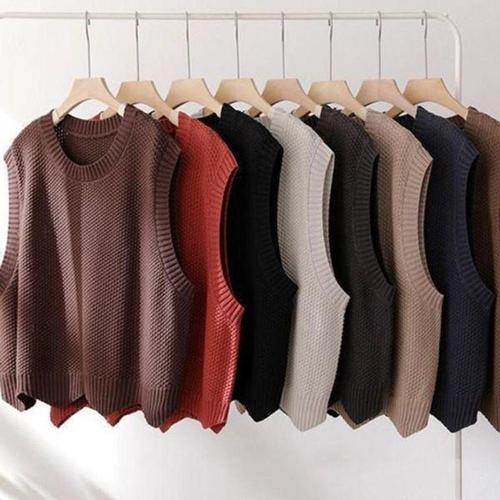 가을 민소매 여성 루즈핏 캐주얼 베스트 패션 솔리드 컬러 우아한 V넥 니트 탑 한국 스타일 풀오버 니트웨어