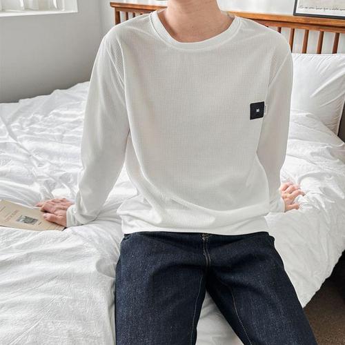 롱티캐주얼 원형넥 탑 남자 플레인 긴팔 레이어드티