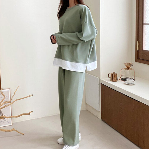 [유야]여성 니트 레이어드 맨투맨 조거팬츠 세트 -FPST0162- 겨울