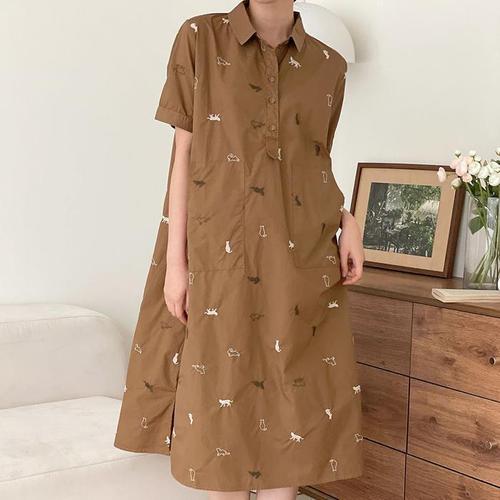 [다잇템]여자 자수원피스 롱셔츠 큰주머니 롱원피스 (10590953A)