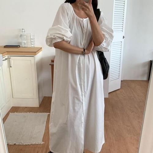 흰색원피스 린넨원피스 반팔 롱셔츠 107-B
