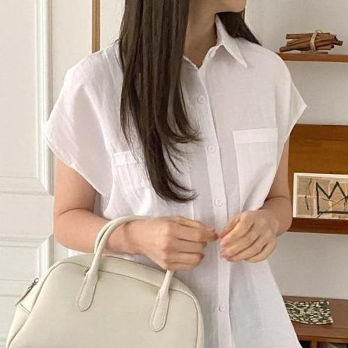 [옷자락]여성 클래식 톤다운컬러 면 린넨 반팔 남방 셔츠