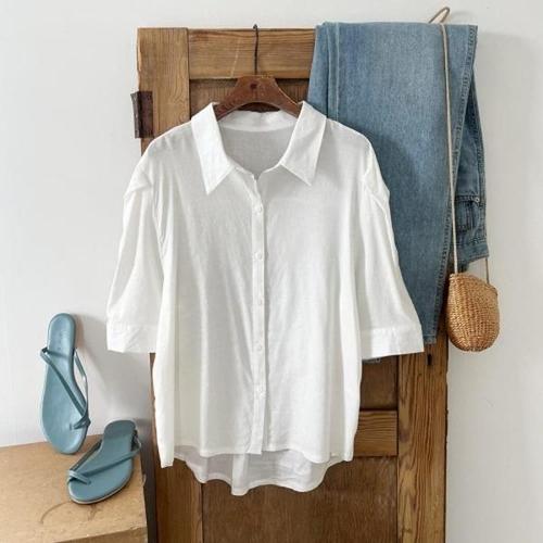 [신상오픈런]|CDH3187|린조알 린넨라이크 스프링 여성 썸머 블라우스 셔츠 오버핏_18157473_597559
