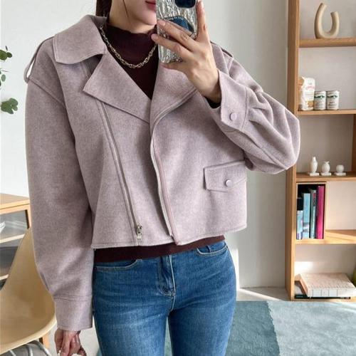 [옷자락]여성 집업 FW 모직코트 미색 바이크 숏자켓