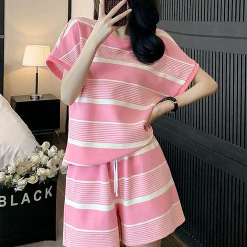 [에이치플러스몰]여성 스트라이프 반바지 반팔 세트
