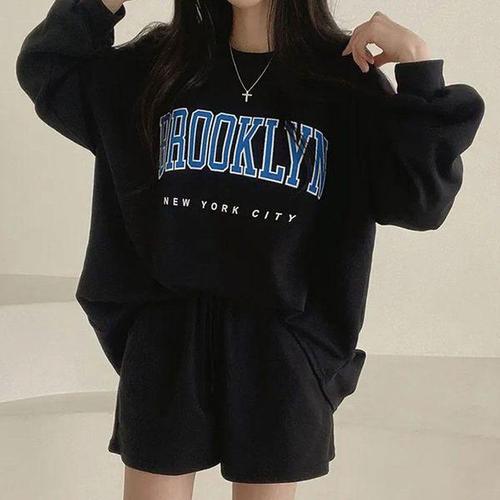 [에이치플러스몰]여성 긴팔 반바지 셋업 레터링 프린팅 오버핏 홈웨어