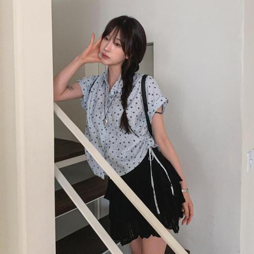 [다잇템]여자 드로우코드 옆셔링 폴딩 반팔셔츠