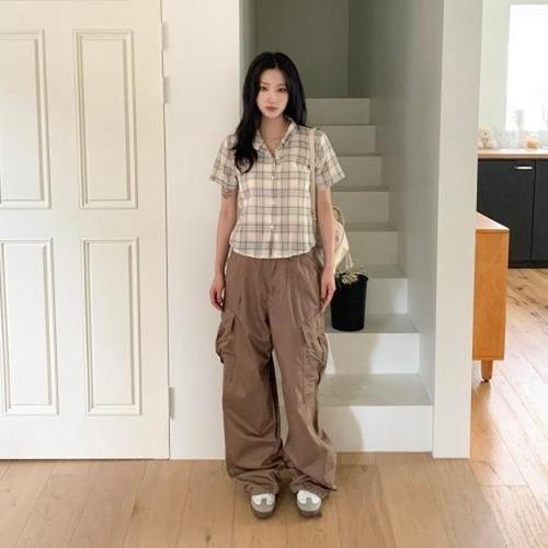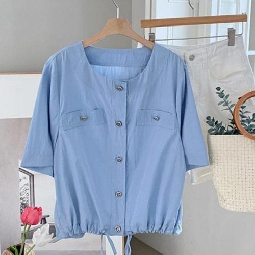 [신상오픈런]여성용 더블포켓 비조버튼 롤업 소매 반팔셔츠 남방