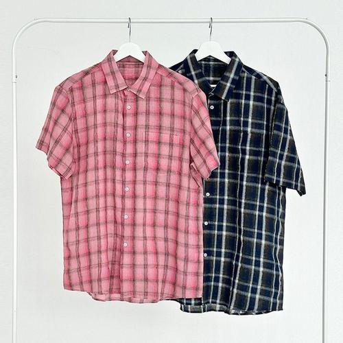 여름 시원한 남자 루즈핏 반팔셔츠 린넨 여자 2색 체크남방 WFKBX1Z
