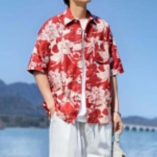 [옷자락]남자 여자 시원한 통기성 플라워패턴 오버핏 반팔셔츠