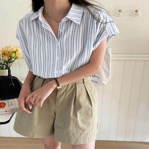 반팔셔츠 남방 스트라이프 블라우스 얇은 여성 여름 WFKBWZH