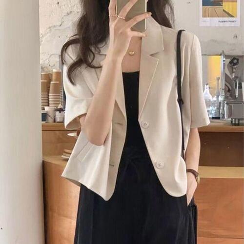 [끌레아]여자 크롭자켓 단정한 반팔셔츠 가볍게걸치기좋은